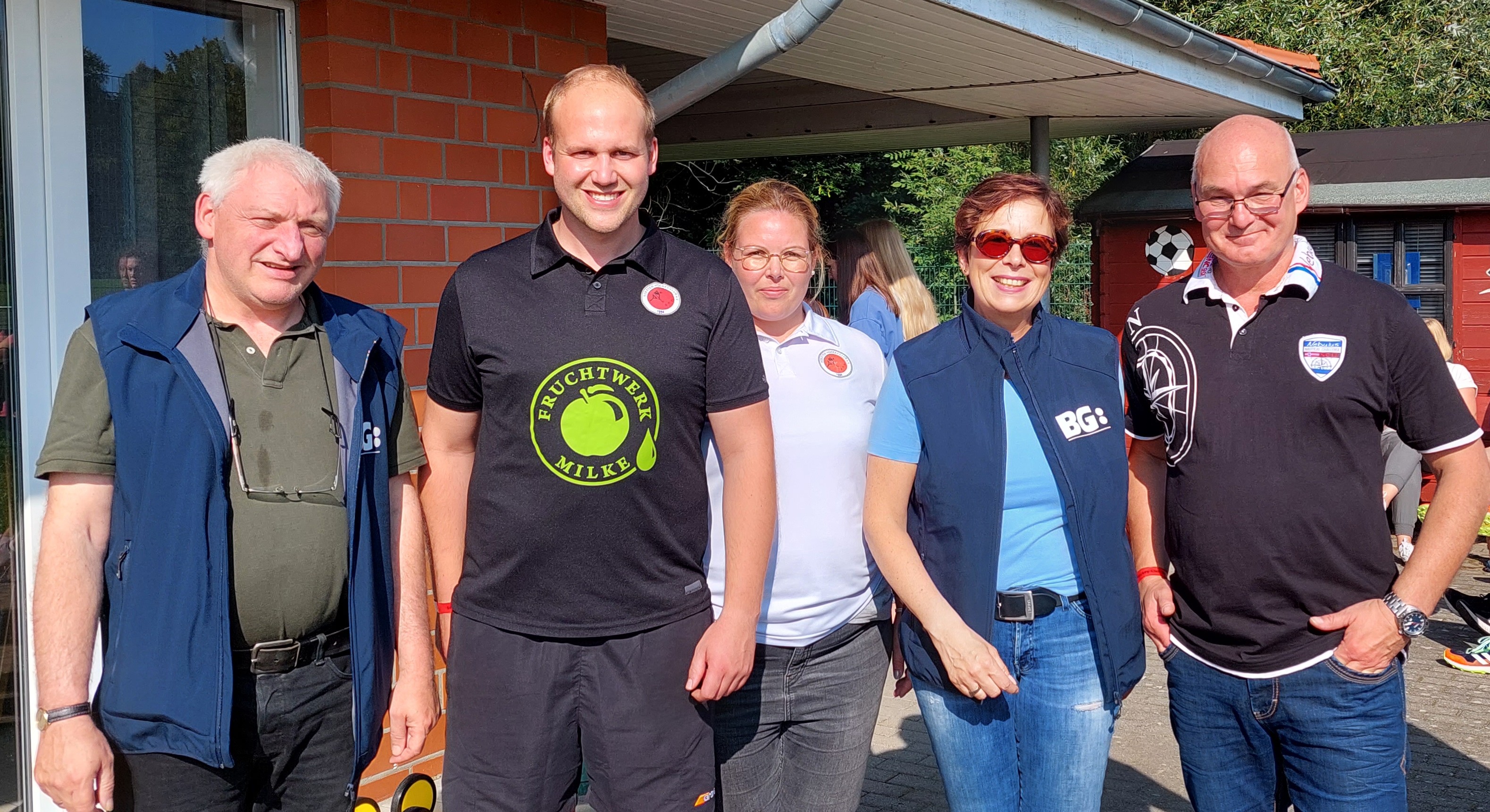 Tim Gosewinkel und Laura Conzendorf (2. und 3. v. li) vom Hockey Club sowie Andreas Kappelhoff (li), Andrea Câmen (2. v. re) und Ralf Gebel (re). Ralf war selbst Hockeyspieler und ist in beiden Vereinen (BG und Hockey-Club).